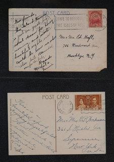 Bermuda postal history collection, 1900s to 1970s, over 140 covers, housed in a Lighthouse cover album with slipcase, with strong representation from the George V and VI periods, includes early postcards, WWI and WWII censored mail, registered covers, multiple frankings, First Day Covers, slogan cancels, a particularly extensive group of WWII censored covers, three 1930s USA ‘Los Angeles’ Airship covers addressed to Bermuda, five 1937 ‘Cavalier’ Imperial Airways cacheted flight covers, Paquebot and ship mail, modern First Flights (some ex-USA), and incoming mail; overall condition is very good with the occasional fault, a varied and appealing group with considerable depth and interest, ideal for the postal historian; (Video 1). (Image)