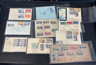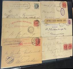 British Africa postal history collection, over 250 covers ranging from the 1900s to 1980s, with the bulk from the 1930s to 1960s, organized on black stock pages held with an album spine; strongest representation from South Africa, including a few Boer War covers, numerous complete commemorative sets on cacheted covers, FDCs, registered usages, multiples on cover, WWII censors, OHMS usages, and others; many with interesting destinations, particularly Australia; also features British colonial period material from Southern Rhodesia, Somaliland Protectorate, Swaziland, South West Africa, Sudan, Gold Coast, and Nigeria, with a scattering from post-independence nations such as Ghana, Zambia, and Zimbabwe; condition is mixed with some soiling, edge faults, toning, and a few fronts as expected in a holding of this size; an excellent opportunity for adding depth to a British Africa collection, building country lots, or resale.(Video 1)(Image)