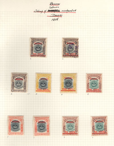 Old Time Collection of Mint and Used Brunei, 1906-1958, mounted on 12 quadrille pages, showing most issues in period in mint, with some used added here and there. We note many complete sets, pairs, blocks, extra shades, some duplication, and more, with several high value items throughout, such as #s 14B-37A (two mint sets @ $242 each), and many more. Some of the Scene on Brunei River issues are mixed (some values are mounted on the incorrect pages), still lots of useful material here, generally with bright colours and fine to very fine. All pages scanned online. (Image)