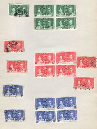 Collection of 1937 KGVI Coronation Issues, with 132 different mint blocks of four (looks like these are only hinged on one stamp, leaving three NH), with several countries (including Hong Kong) also having extra mint and / or used singles. Overall very fine, photos show a small sampling. (Image)