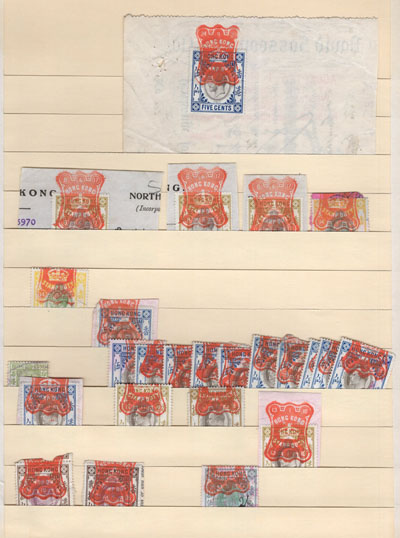 Group / Stock of British Commonwealth Revenues, all in 12 Manila stock pages, with Hong Kong (x25 KEVII to KGV issues), Australian States (x82), Cape of Good Hope (x75), Great Britain (4 pages stuffed full of KEVII and KGV Foreign Bill and Contract Note issues to the £2.10.00 value), 3 pages of GB Foreign Bill issues on piece with other country Revenues such as Japan (mostly), Chili and Peru, as well as various quantities of Cyprus, Malta and New Zealand, plus a page full of Singapore. Some faults here and there, still a good quality group overall, unchecked by us rarities, etc. A great opportunity for finds, all pages scanned online. (Image)