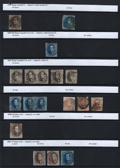 Collection of Mint and Used Belgium, 1849-1940s, displayed on 12 black stock pages and 21 album pages. A useful collection, notable for its extra perforations and shade varieties, with a little duplication of some. Includes Semi-Postals, Postage Dues and Parcel and Railway stamps. We catalogued up to 1920 only, which came to U$1,886 in Scott. A few faults on the early issues, else overall fine to very fine. Scans only show a small portion of the collection. (Image)
