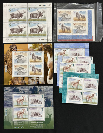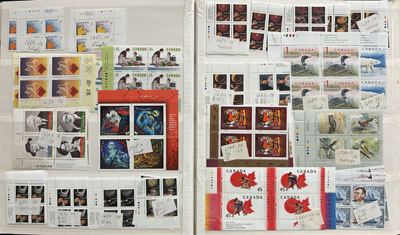 Collection of Mint Never Hinged in Three Minkus Albums, 1953 to 2017, appears to be close to complete in period (last two years are 50% complete) for singles, sets, se-tenant multiples and booklet panes and includes lots of extras such as 5 cello-packs from the 1950s-60s, phosphor issues, many souvenir sheets, mini panes, modern coil strips, a 2015 Unesco recalled stamp, several listed minor varieties, and more. The face value given is for all stamps after 1988 plus only those 25c and up from 1953 to 1988. A very nice and clean collection, useful to postage users, collectors or dealers alike. (Image)