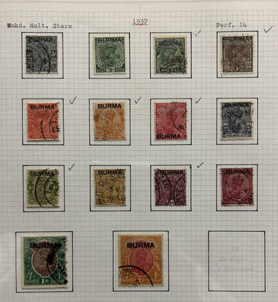 Collection of Mint and Used Burma, 1937-1948, mounted on quadrille pages, Scott pages and one stock page. Noted complete sets, mix of mint and used (usually a set will be either mint or used), etc., including Officials. Overall fine or better. (Image)