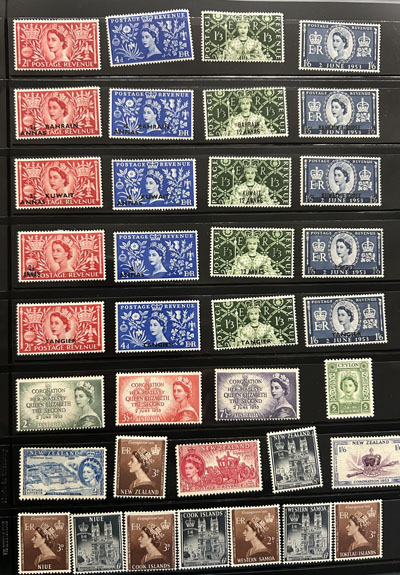 Group of Common Design Commonwealth Issues, all displayed on 6 black stock pages, with 1935 Silver Jubilee (63 mint and mostly used stamps), 1937 Coronation (24 mint and used stamps), 1945-46 Peace (80 mint stamps) and 1953 Coronation (60 mint stamps). Most of the mint are never hinged and some of the used 1935s have toning, overall very fine. A great opportunity for the variety seeker (especially in the 1935s). (Image)