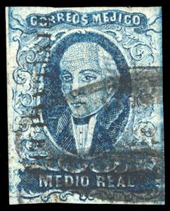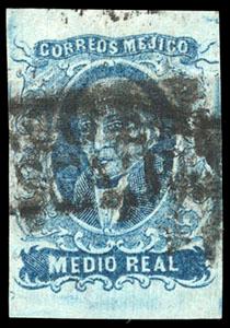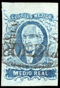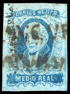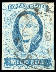 Mexico, 1856, First Issue, ½r blue, Tixtla Guerrero. Oval Tixtla de Guerrero cancel (Schatzkes 1629), F.-V.F (N.F. $400). Scott No. 1; Estimate $150 - 200. US$150-200 (Image)