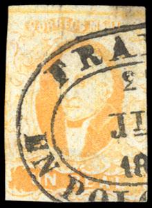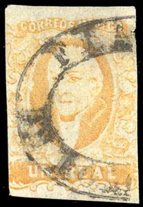 Mexico, 1856, First Issue, 1r yellow, without district overprint (Polotitlan). Oval Polotitlan date stamp cancel (Schatzkes 1145), F.-V.F., rare with only 360 sent (N.F. $1,000), with 2003 M.E.P.S.I. certificate. Scott No. 2c; Estimate $300 - 400. US$300-400 (Image)