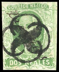 Mexico, 1856, First Issue, 2r yellow green, Sultepec. oval Sultepec cancel (Schatzkes 1551), faulty and rebacked, Fine appearance, an affordable example of this very rare stamp (N.F. $2,500). Scott No. 3; Estimate $250 - 350. US$250-350 (Image)