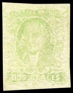 Mexico, 1856, First Issue, 2r yellow green, printed on both sides. No gum, unusual as both sides show a light pastel-like print, Very Fine. Scott No. 3g; $300. US$0 (Image)
