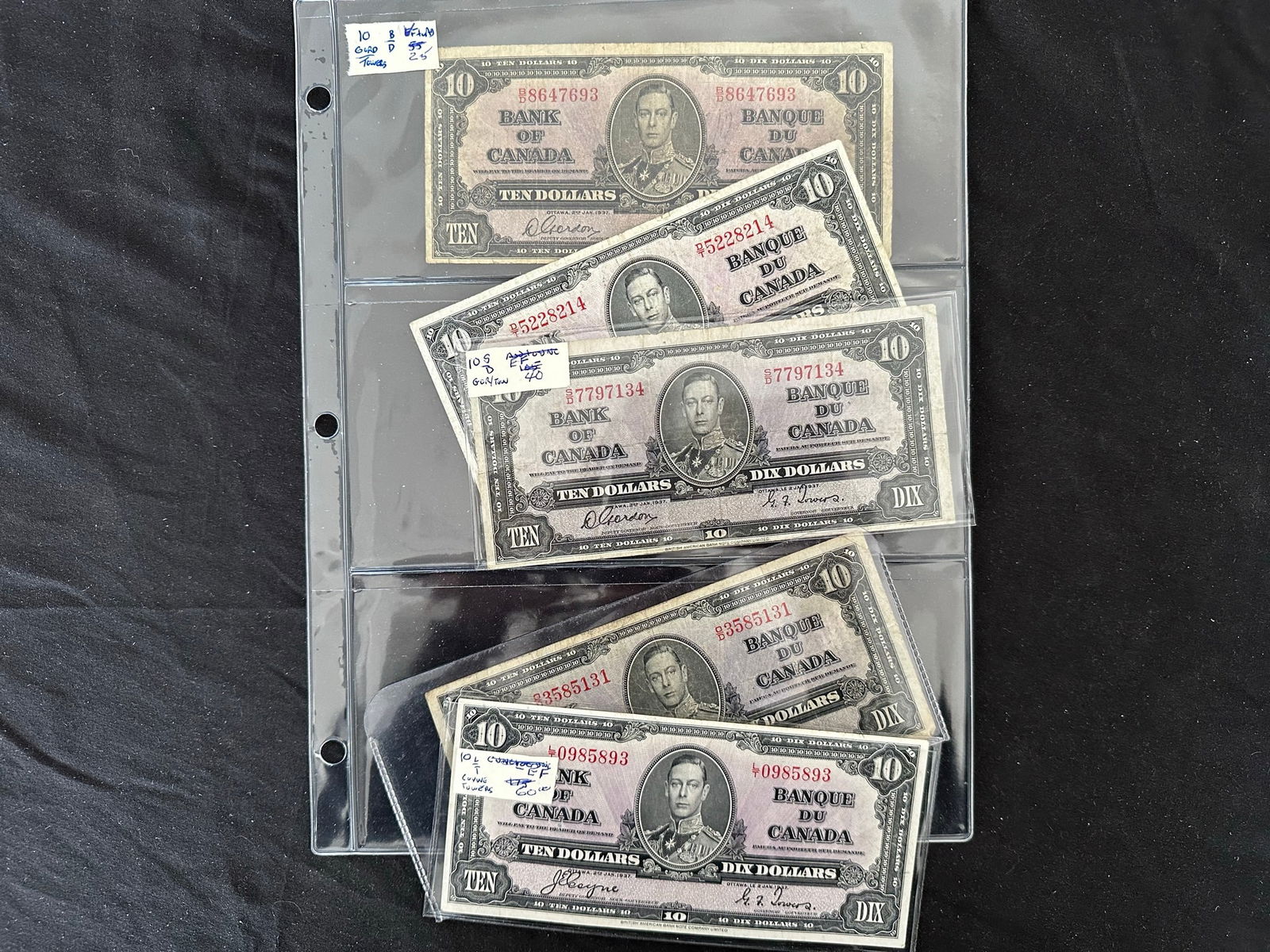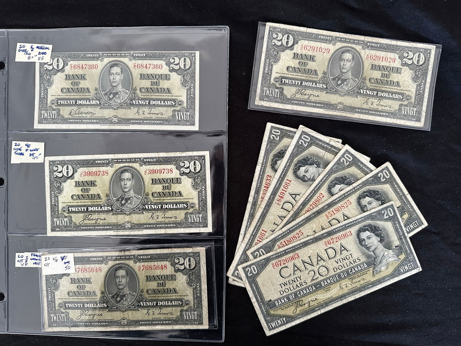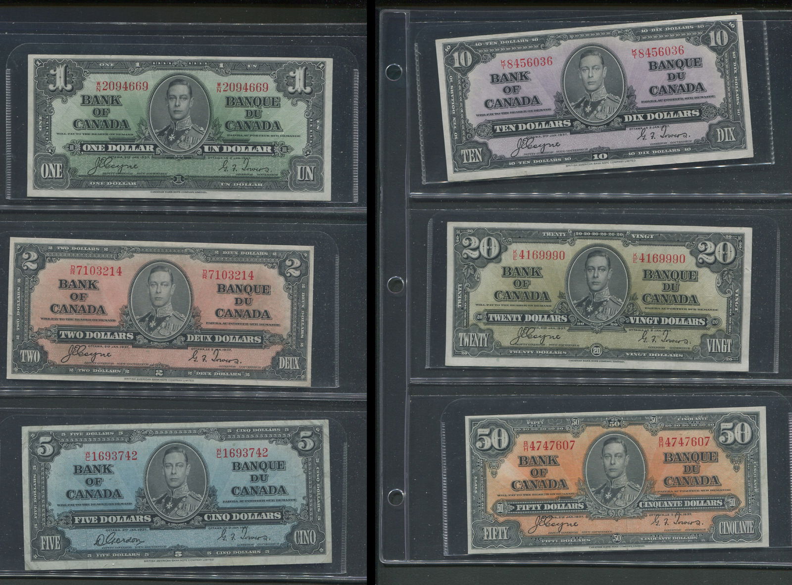 A 6 note collection of the 1927 George VI bank notes, EF overall and attractive. (Image 1)
