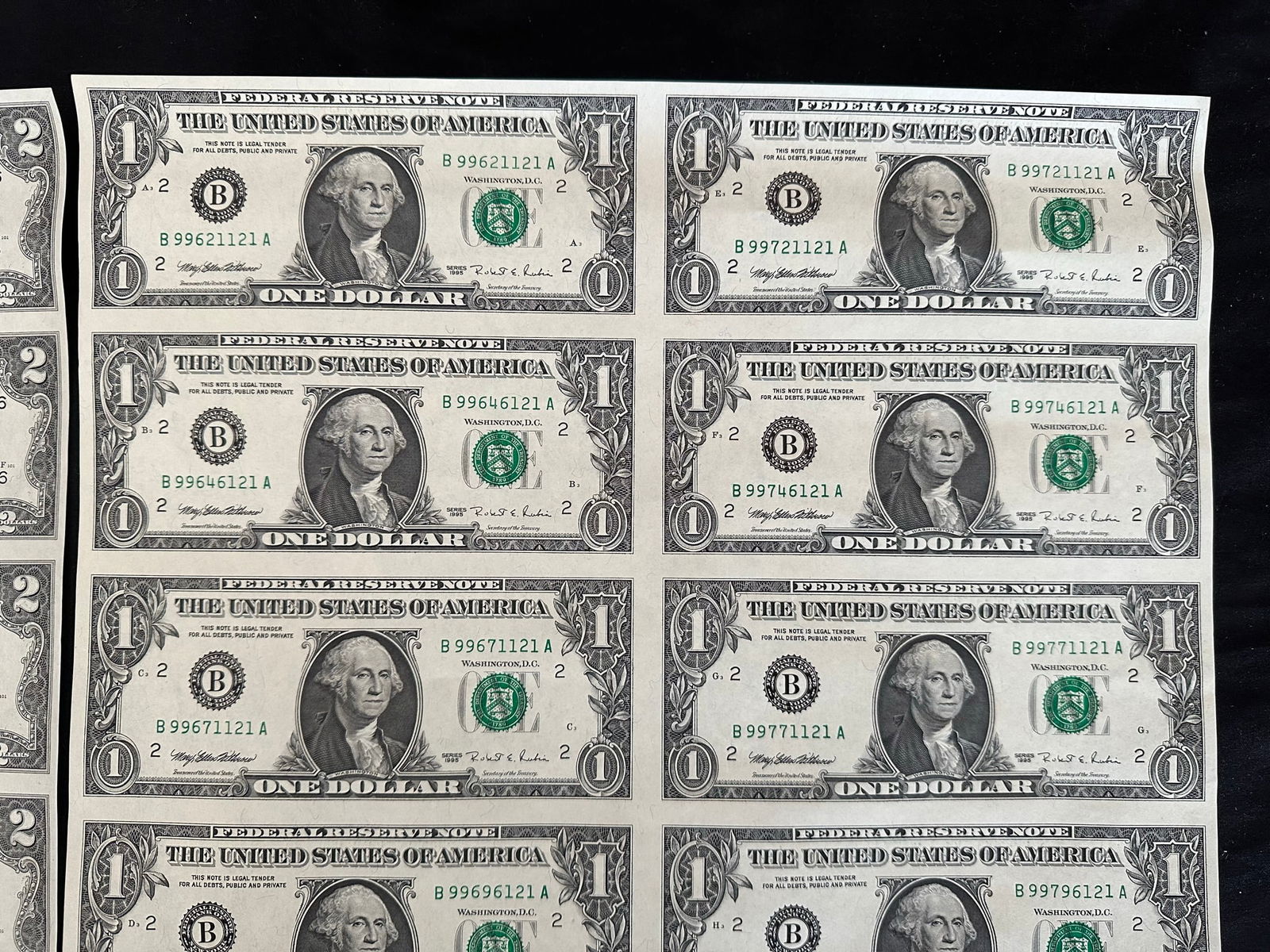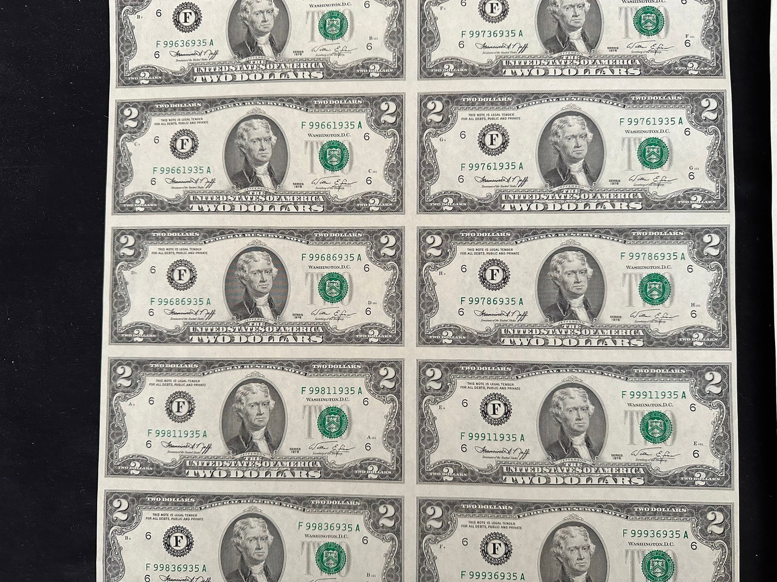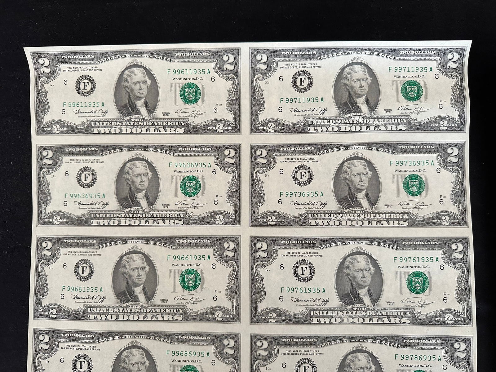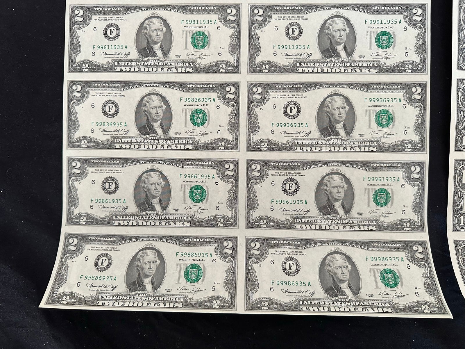 2 USA uncut sheets, of 16 of $2.00 and $1.00 bank notes, crisp condition, both in rolls and each having their own tube. (Image 1)
