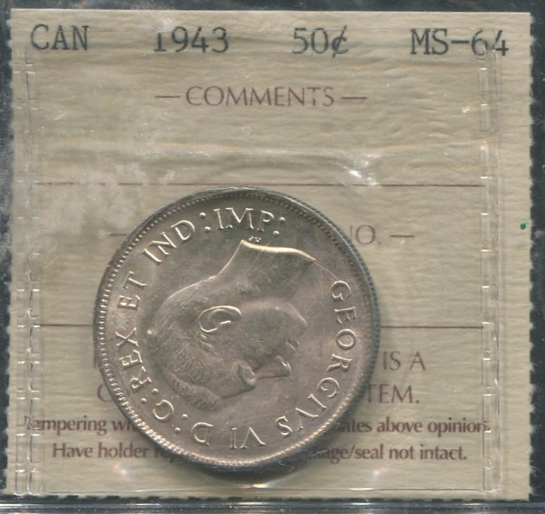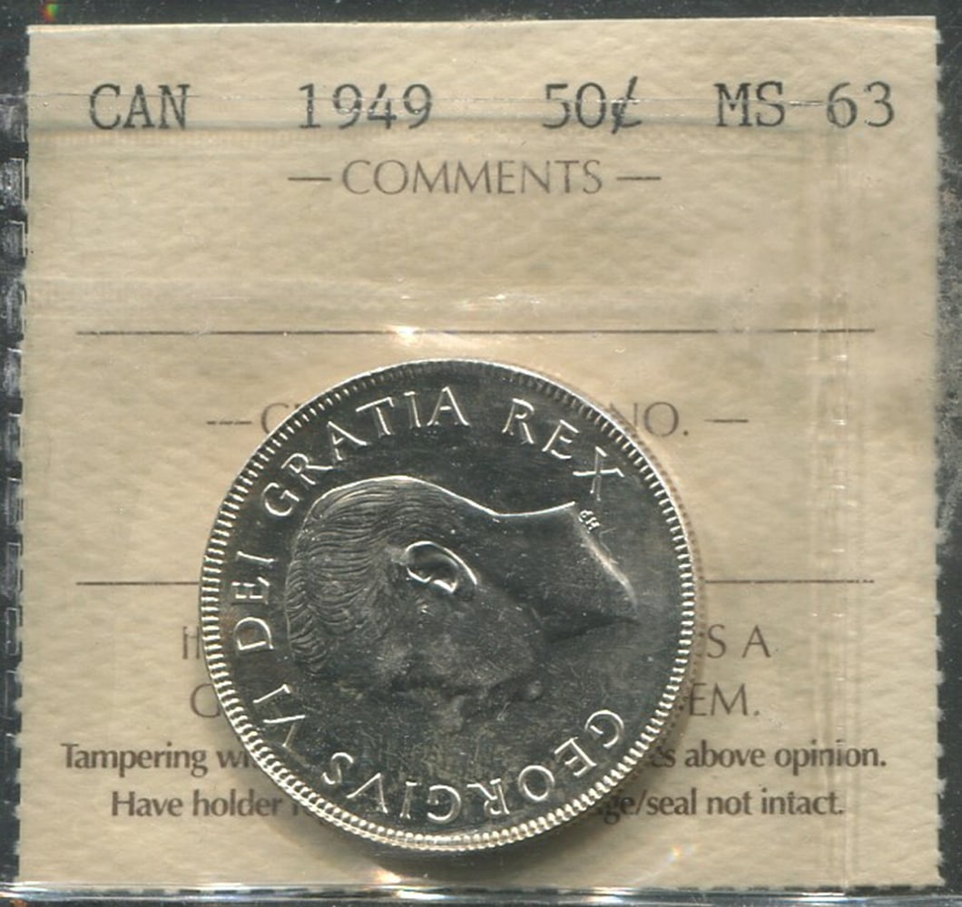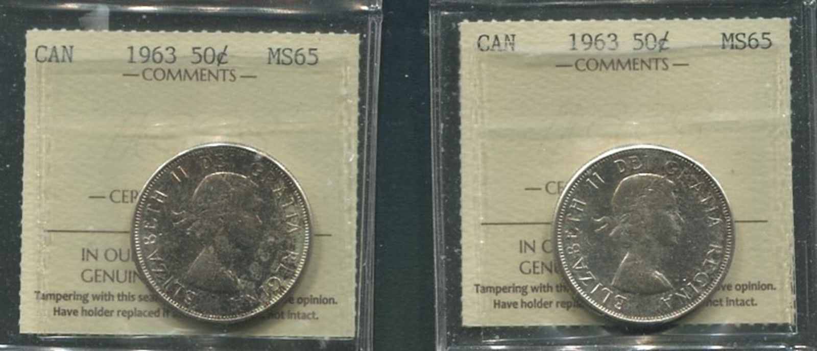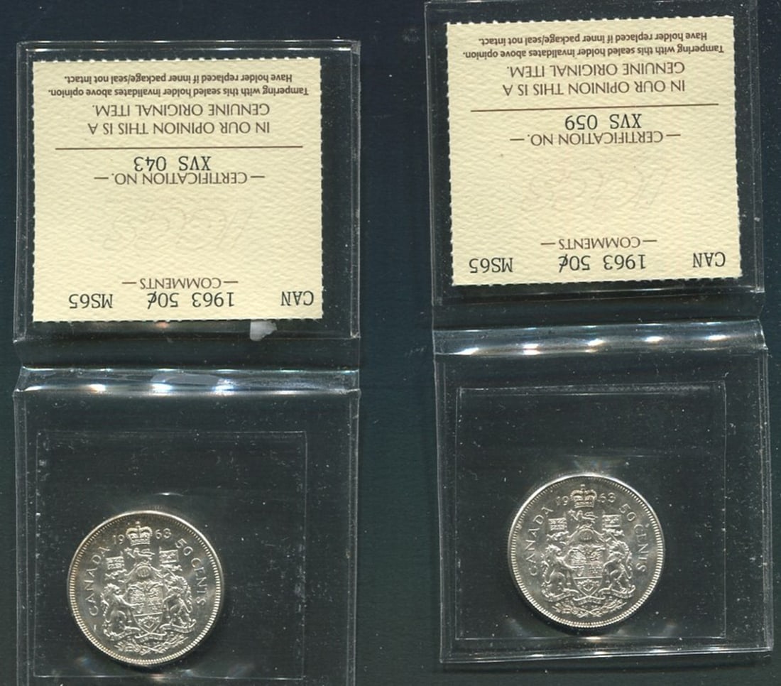Two Canada 50 cents, both ICCS graded MS 65, Unitrade value $80.00 each CND. Total value $120.00 USD (Image 1)