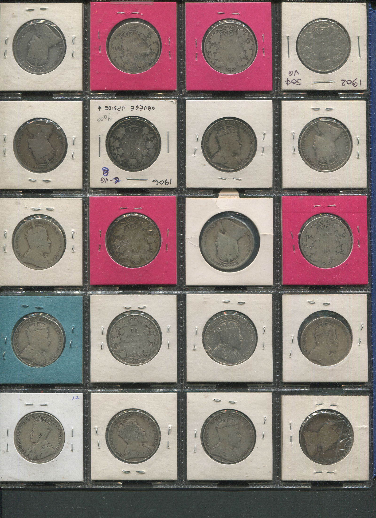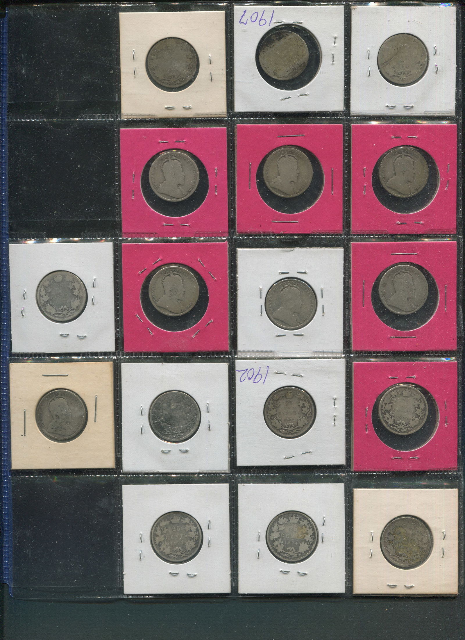 This lot is a collection of 17 Canada 25 cent coins including 3 Victoria and 8 Edward VII. Average grade is G. (Image 1)