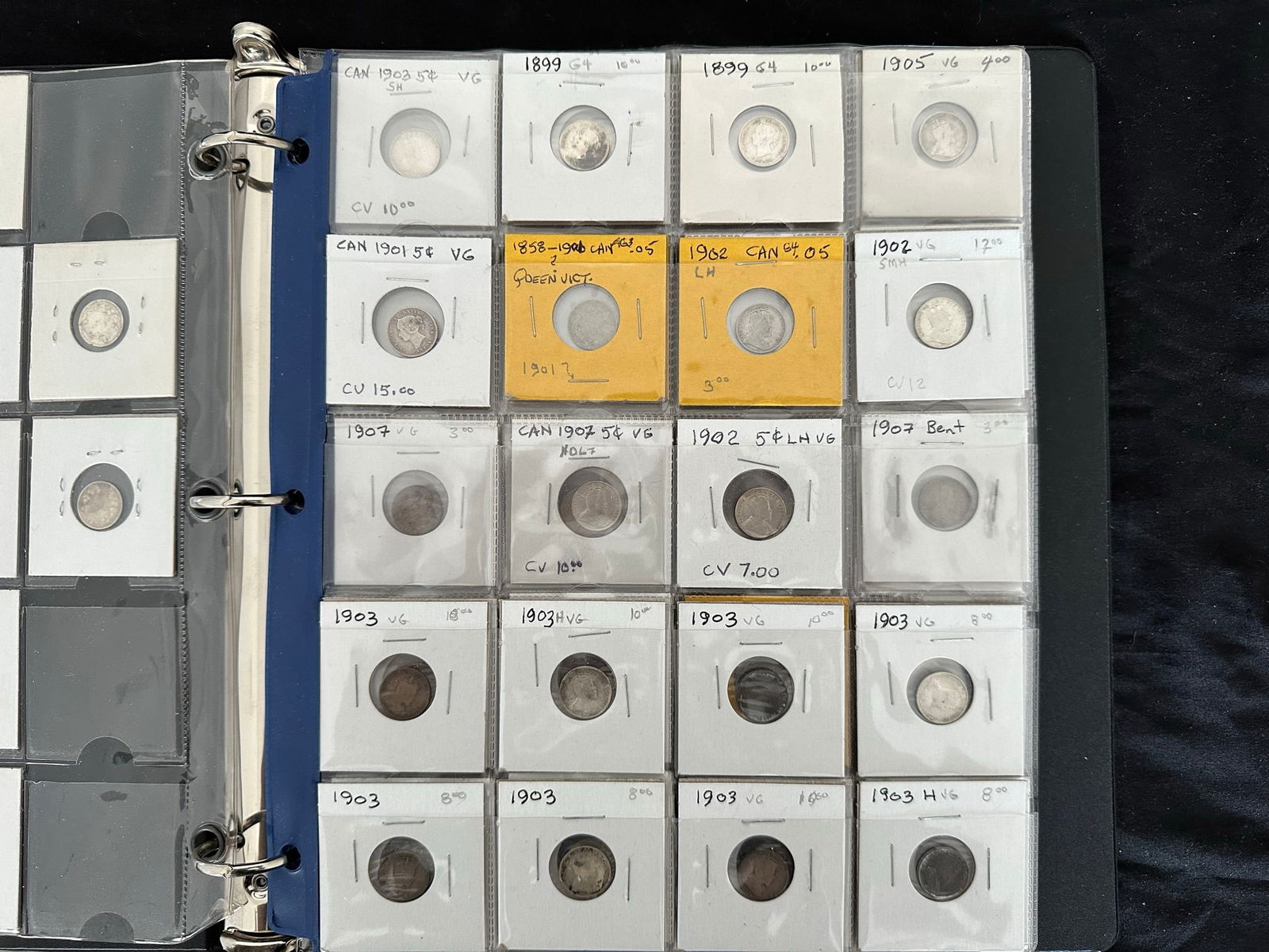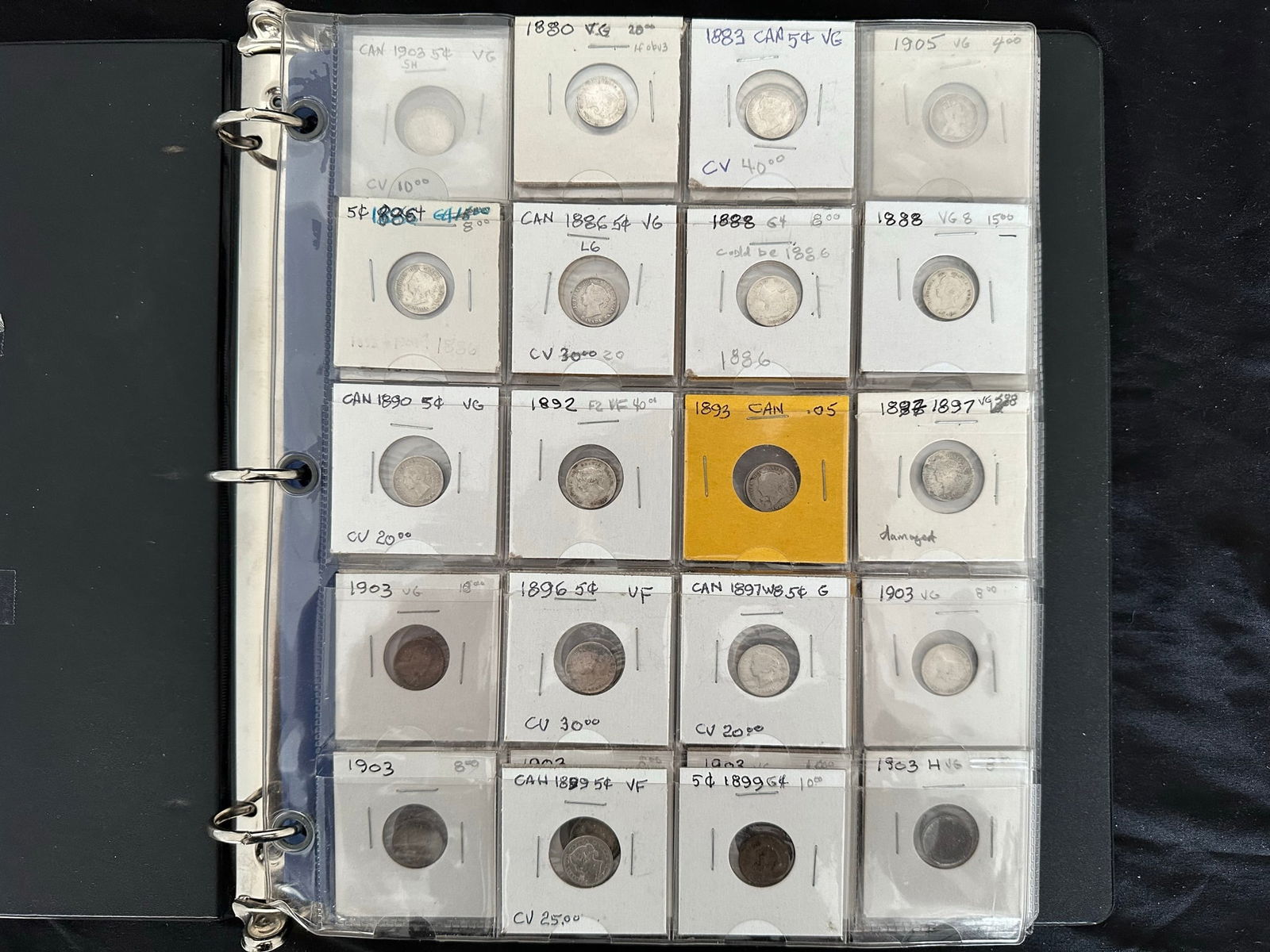 This lot is an extensive collection of Canada silver 5 cent coins from Victoria to George V. There are 143 silver 5 cents in the collection.Average grades are VG-Fine with some VF. A few damaged. (Image 1)