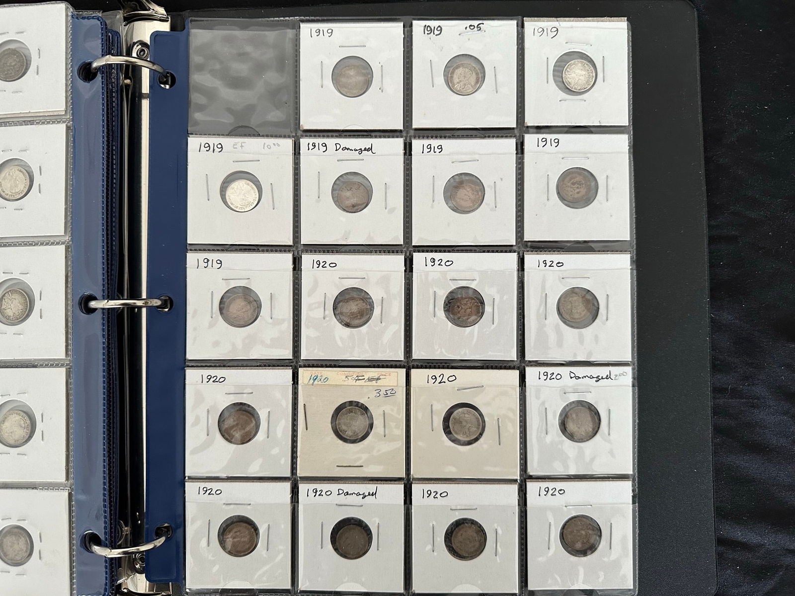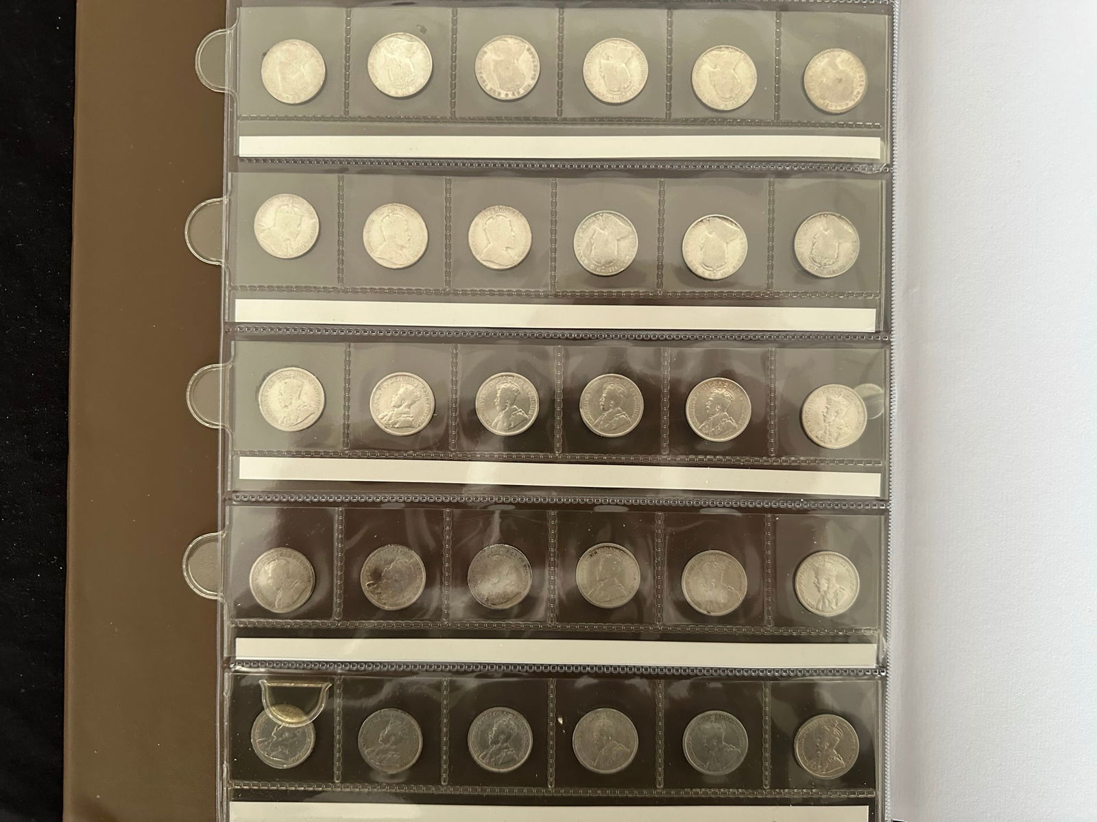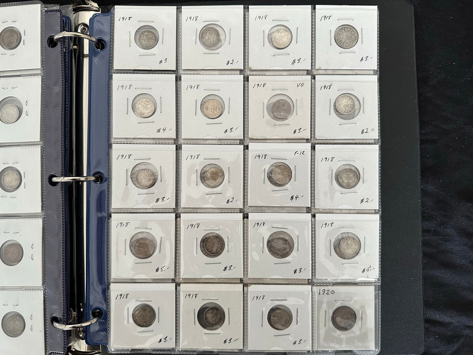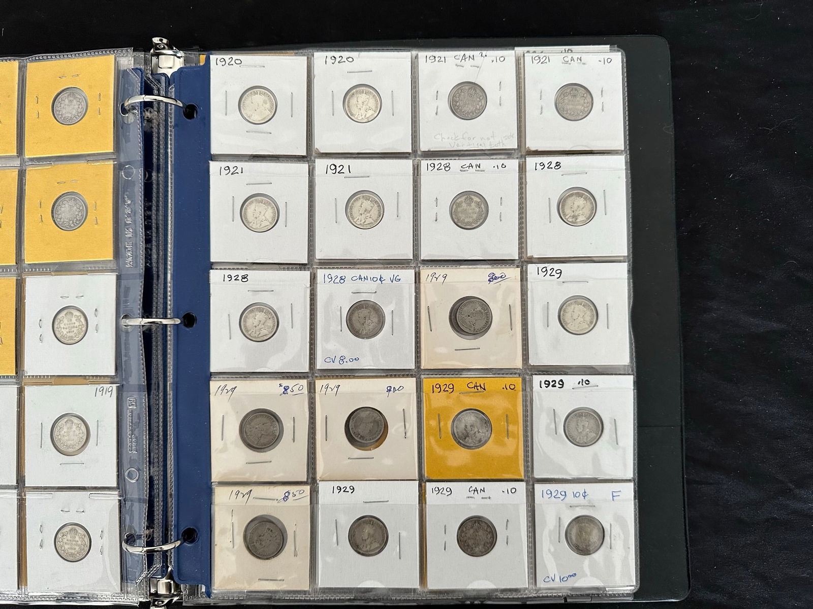This lot is a collection of160 Canada silver 10 cent coins from 1888 to 1938,inc;uding 7 Victoria, 33 Edward VII, 108 George V, and 13 George VI. Some "semi-key" dates such as the 1915 10 cents and a nice EF 1932 10 cents. Overall grades are G, VG, F. All are silver coins. (Image 1)