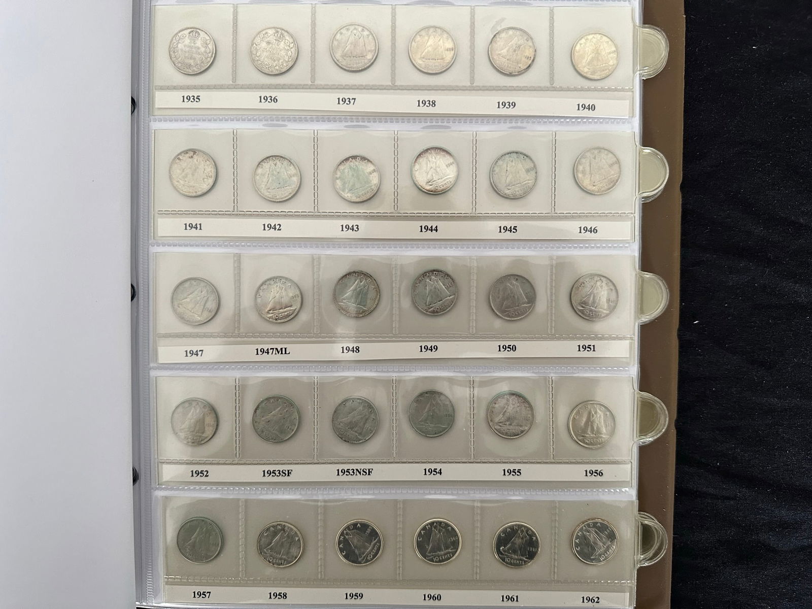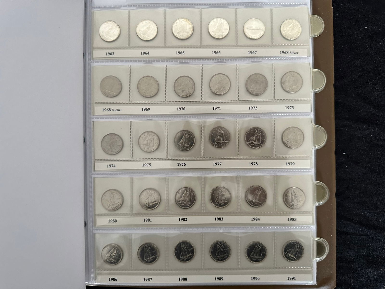 Canada 10 cents coin collection, from Edward VII to Elizabeth, 1901 - 2021.- Includes 1953 NSF and a group from 1958-68 being gem BU.Victoria, Edward, and George VI gradee VG - Fine. 66 silver coins from 1901 - 1968. (Image 1)