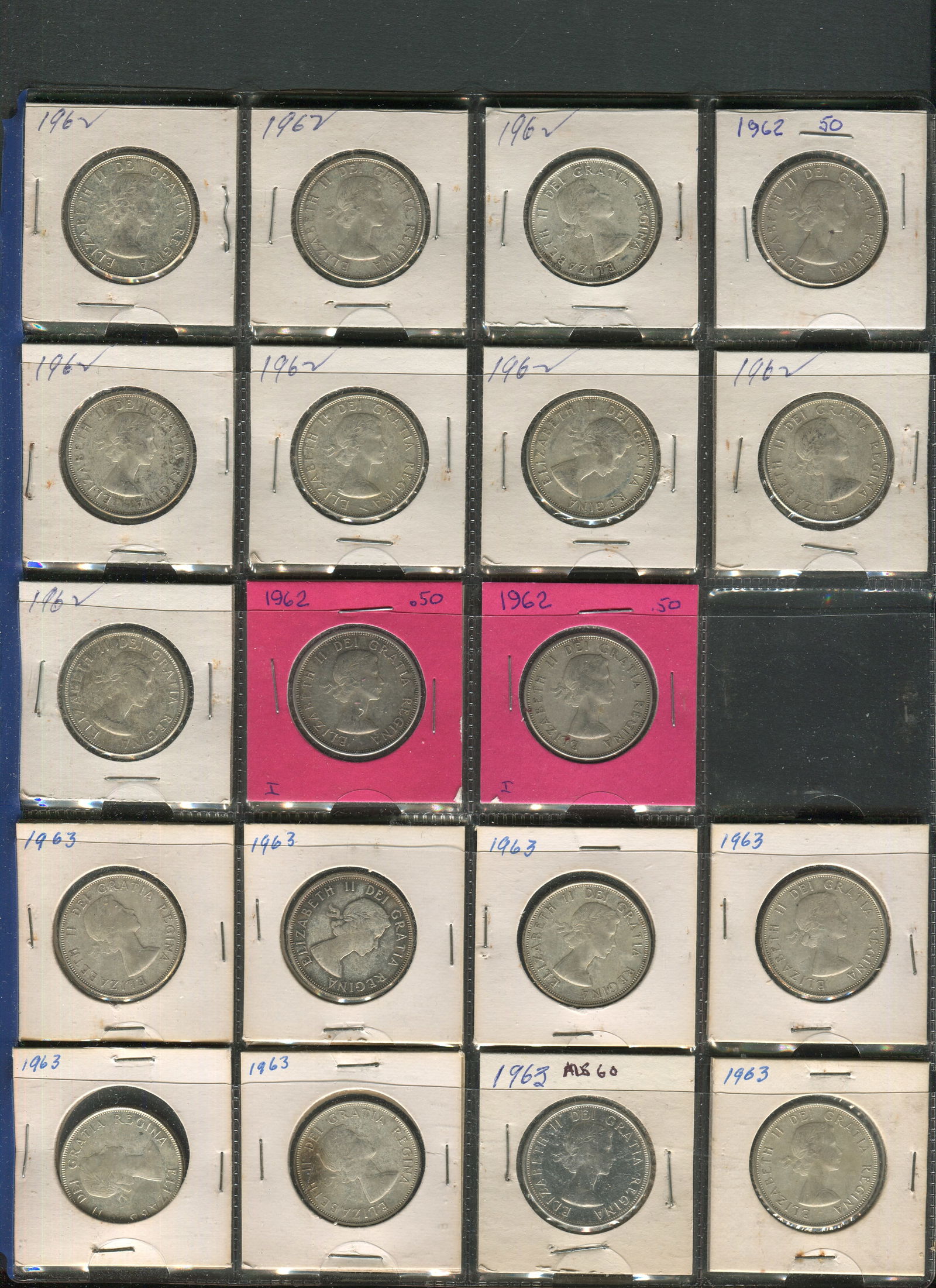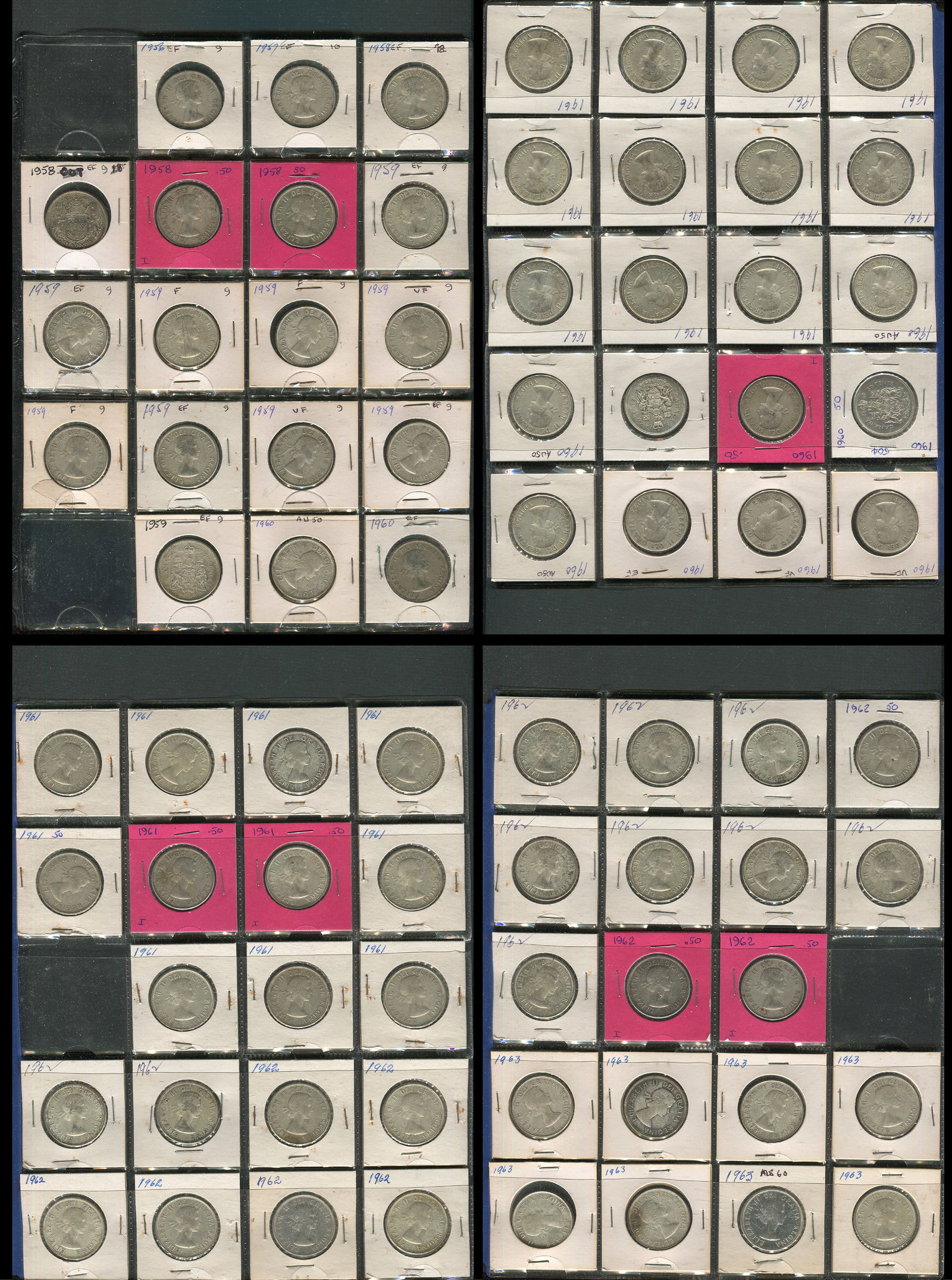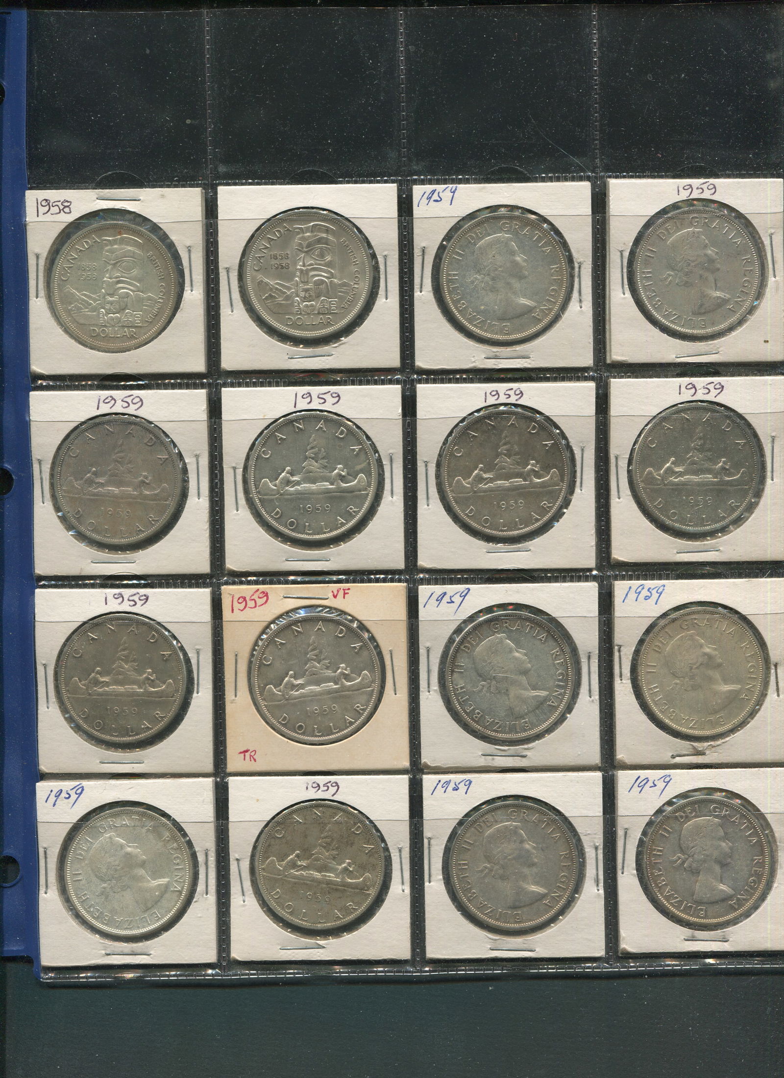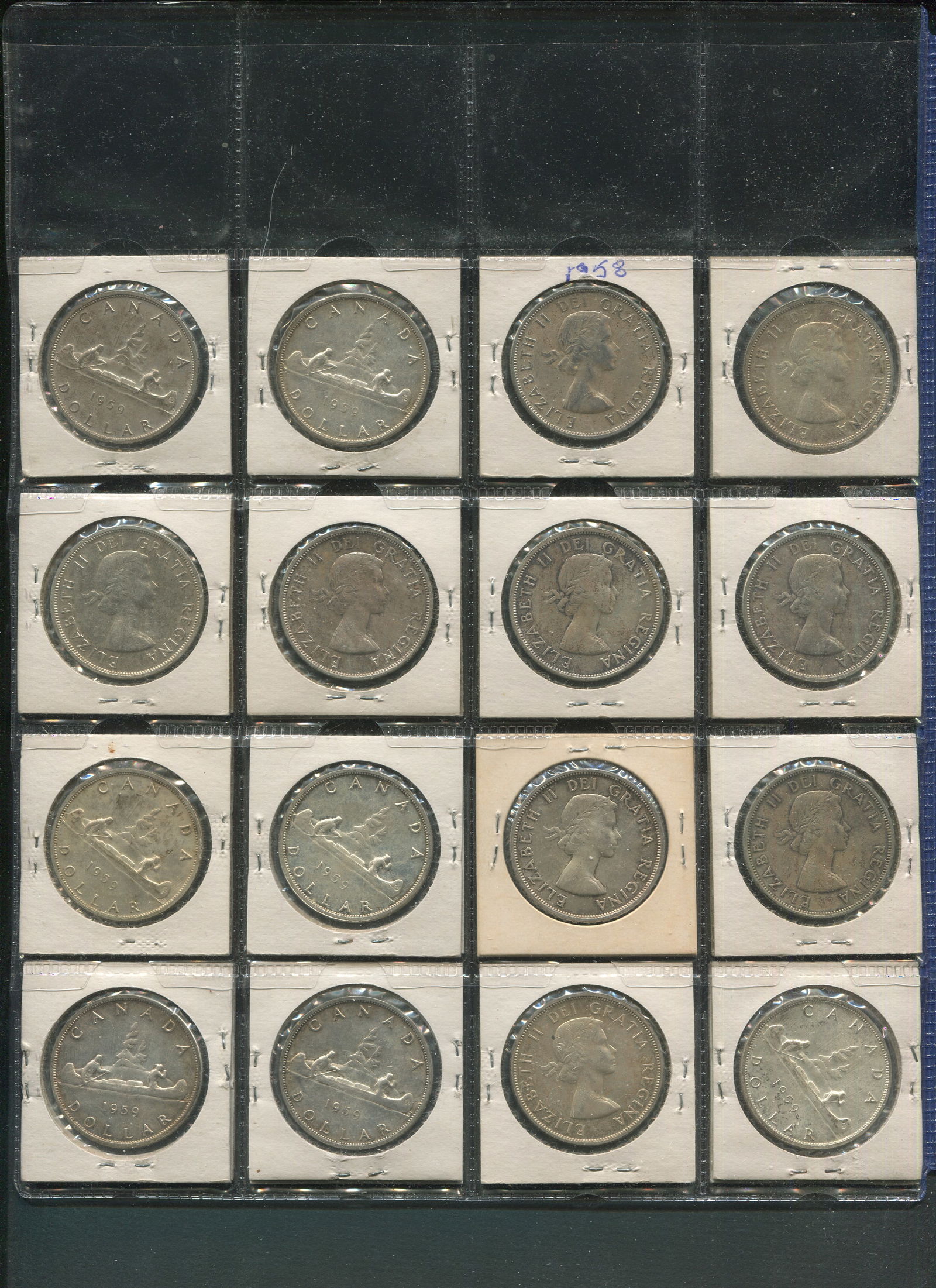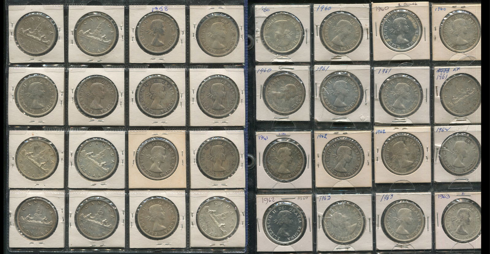 Canada 1958-1963 Silver Dollars. A collection of 32 consisting of 1958 (2), 1959 (14), 1960 (5), 1961 (4), 1962 (4), 1963 (3). Grades range from EF-MS. (Image 1)