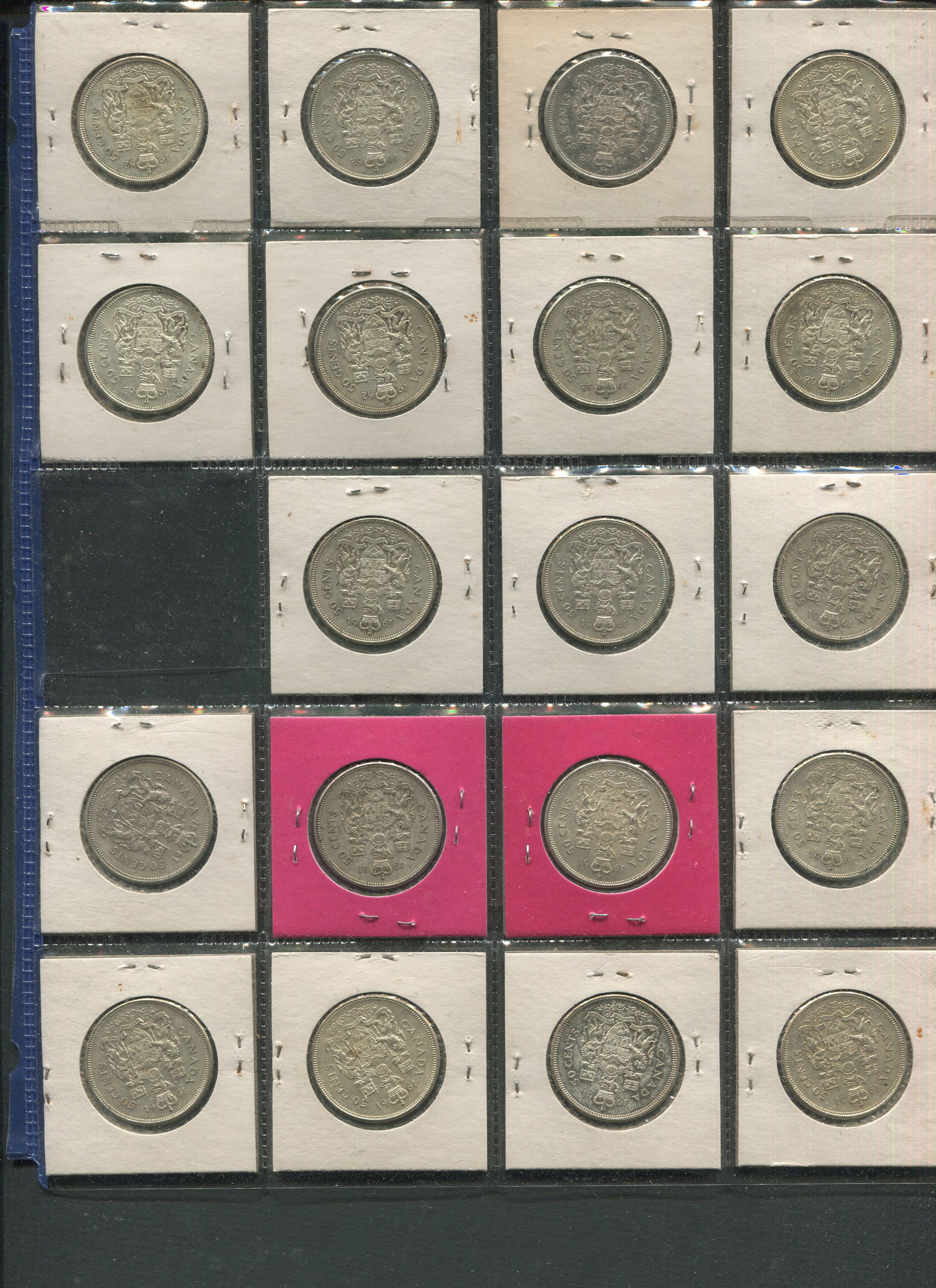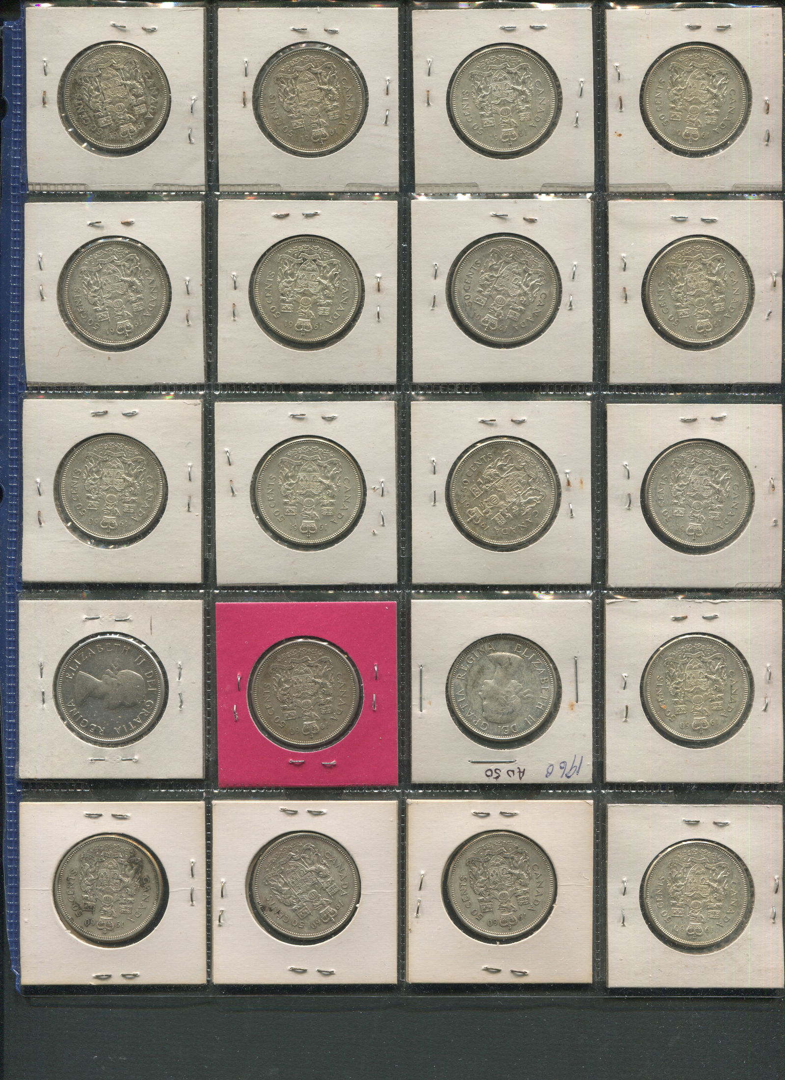 This lot consists of 76 Canada Queen Elizabeth Silver 50 cents coins, grades ranging from VF-AU.Each coin has a silver content worth over $9.50 CND/ $7.00 USD per coin. ($532 USD silver value alone) (Image 1)