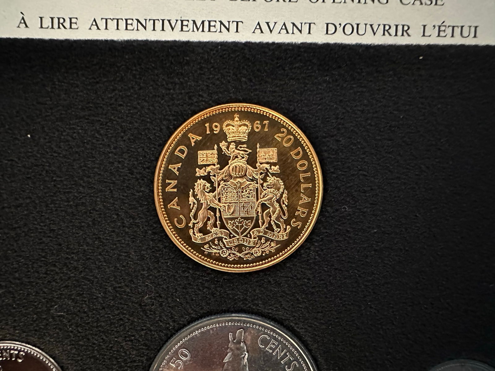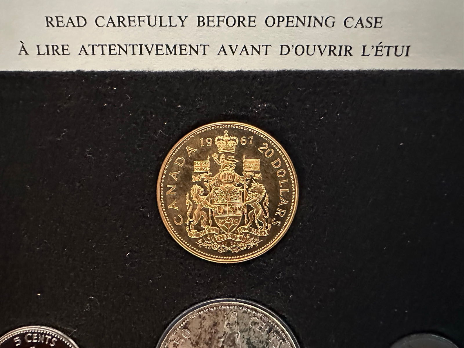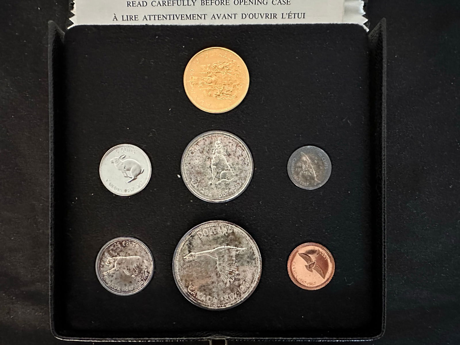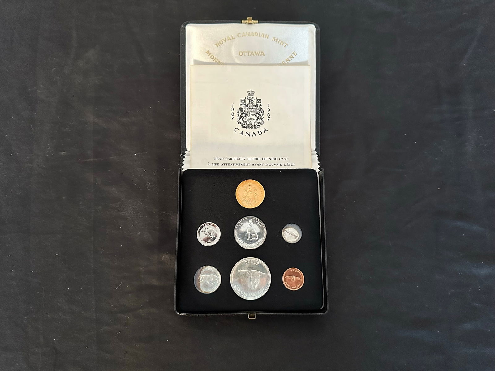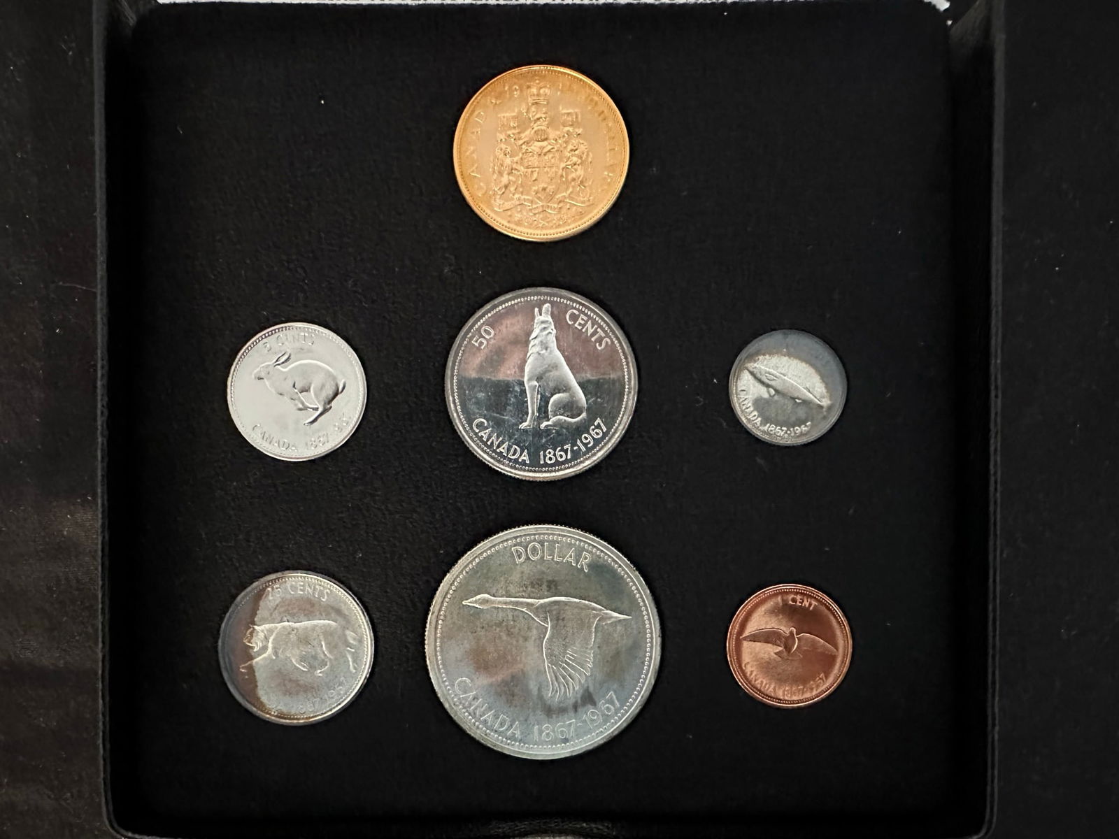Canada 1967 7 Coin Specimen Set with the gold coin included. The set commemorates the 100 year centennial of Canada. All coins are in superb condition. (Image 1)