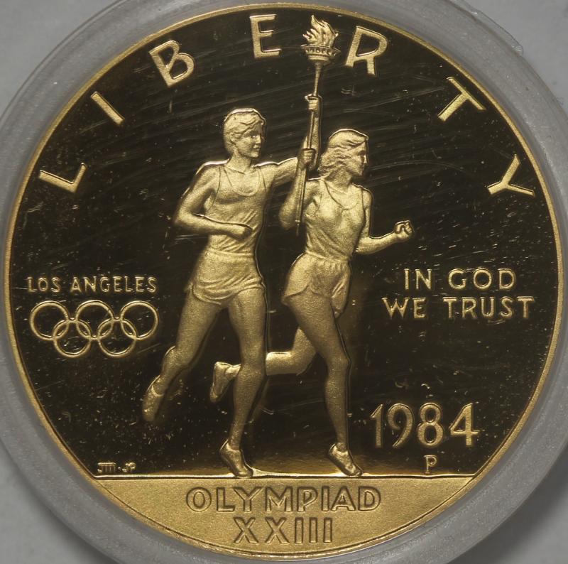 Olympic 1984 P-Mint $10 Gold Proof in OGP w/ box and papers. (.484 ozt AGW) (Image)