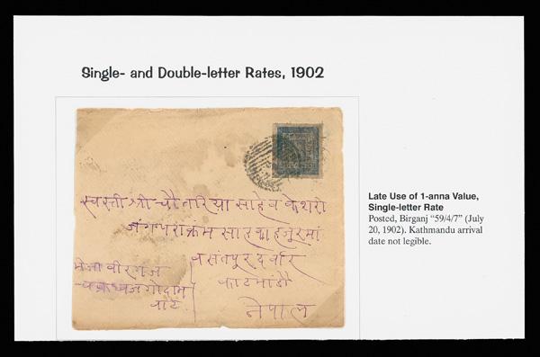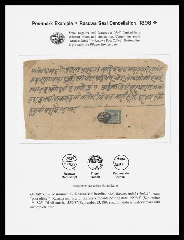 1898 (Sept. 19), Cover from Rasuwa to Kathmandu (arrival), bearing 1a light blue with huge margins all round, canceled by perfect strike of "Shri/Rasuwa Hulak/Bikram Sambat (date)" negative seal, Extremely Fine. (Image)
