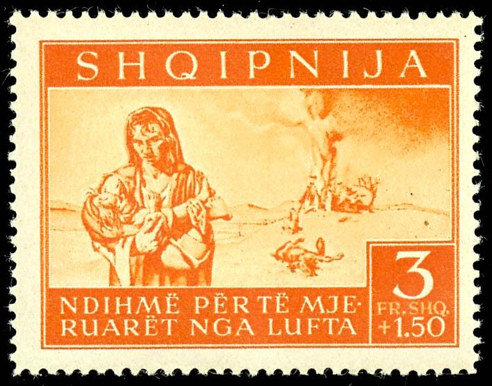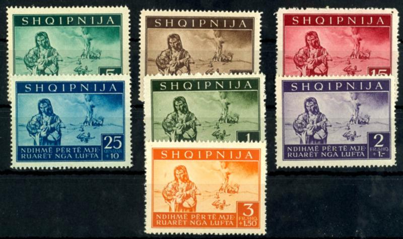 5 Qind to 3 Fr. \Aid for the victims of air raids\, complete set of seven values, mint never hinged, flawless condition, unsigned, Michel 110.- (15/21) 5 Qind bis 3 Fr. \Hilfe zugunsten der Opfer der Luftangriffe\, kompletter Satz mit sieben Werten, postfrisch, tadellose Erhaltung, unsigniert, Mi. 110.- (Image)