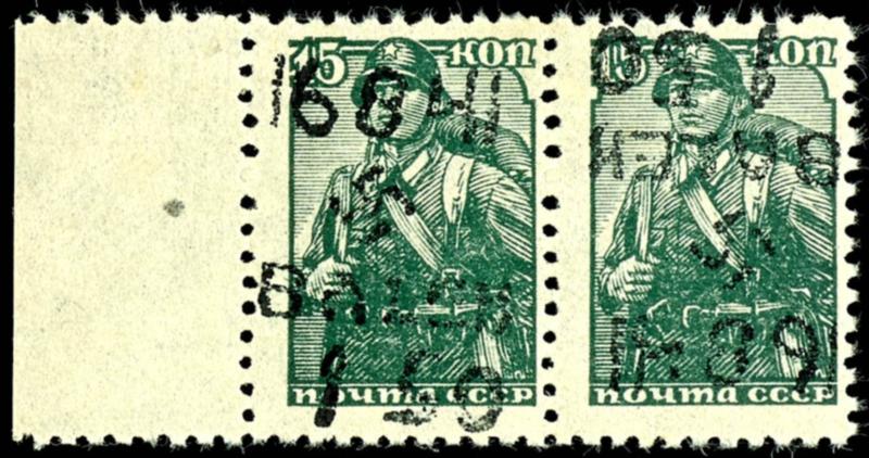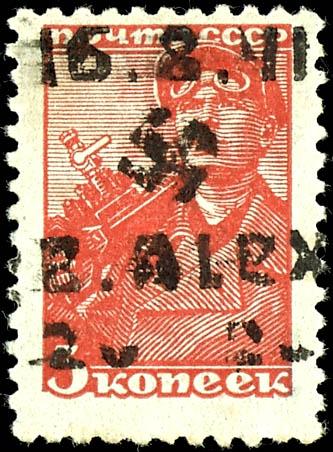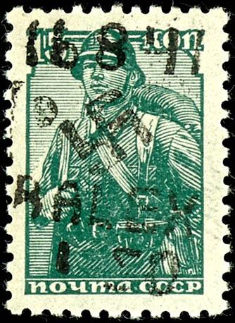 15 Kopeks with handstamped overprint \16. 8. 41 / B. ALEX / 1. 50\, cancelled with stamp \Obl. OD. BOLSCHAJA. ALEXANDR. 6 19. 4. 42\, photographic expertise by Robert Brunel VP (2025) \The condition is flawless\, Michel 220.- (5III) Certificate 15 Kopeken mit Handstempel-Aufdruck \16.8.41/B.ALEX/1.50\, entwertet mit Stempel \Obl. OD. BOLSCHAJA. ALEXANDR. 6 19.4.42\, Fotobefund Robert Brunel VP (2025) \Die Erhaltung ist einwandfrei\, Mi. 220.- (Image)