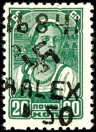 20 Kopeks with handstamped overprint \16. 8. 41 / B. ALEX / 1. 50\, on the right margin, mint never hinged with original gum, slightly stock flecked, not signed, photographic finding Robert Brunel VP (2025), Michel 90,- (6III) Certificate 20 Kopeken mit Handstempel-Aufdruck \16.8.41/B.ALEX/1.50\, vom rechten Seitenrand, postfrisch mit Originalgummierung, minimal stockfleckig, nicht signiert, Fotobefund Robert Brunel VP (2025), Mi. 90,- (Image)
