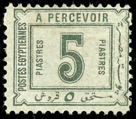 1888, postage due stamp 5 Piasters clean hinge, well perforated, Michel 340.- (P14I) 1888, Portomarke 5 Piasters sauber Falz, gut gezähnt, Mi. 340.- (Image)