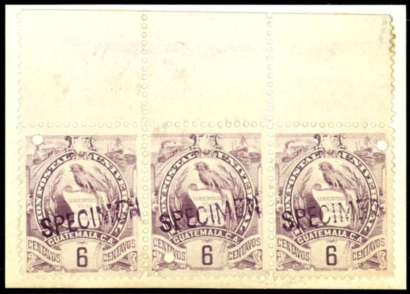 coat of arms, sample prints / templates the designations 1 C blue, 2 C brown and 6 C lilac, strip of three at the upper margin with official cancellation punching and dark purple hand stamp SPECIMEN, on box mounted, very rare, appeared first 1990 from the archive holdings of the printing plant (43,44,46(3)) Wappen, Druckmuster/Vorlagen der Bezeichnungen 1 C blau, 2 C braun und 6 C lila, Dreierstreifen am oberen Rand mit amtlicher Entwertungsstanzung und dunkelviolettem Handstempel SPECIMEN, auf Karton montiert, sehr selten, erschien erst 1990 ab die Archivbestände der Druckerei (Image)