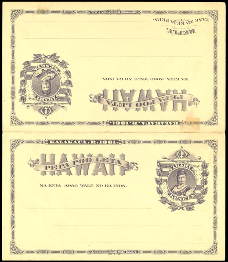 postal stationery: 1 c plus 1 c card with reply, Scott UY1, unseparated, all slight storage traces, unused, catalogue value to Scott: 400.- $ (UY1) Ganzsachen: 1c+1c Karte mit Rückantwort, Scott UY1, ungetrennt, ganz leichte Lagerungsspuren, ungebraucht, Katalogwert nach Scott: 400.- $ (Image)