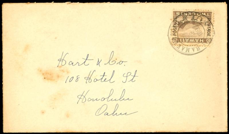 HAMAKUAPOKY / MAUI, clear violet town cancel on cover from 18.112.1897 to Honolulu, letter minimal stained, reverse arrival postmark (58) HAMAKUAPOKY /MAUI, klarer violetter Ortsstempel auf Brief vom 18.112.1897 nach Honolulu, Brief min. fleckig, rs. Ankunftsstempel (Image)