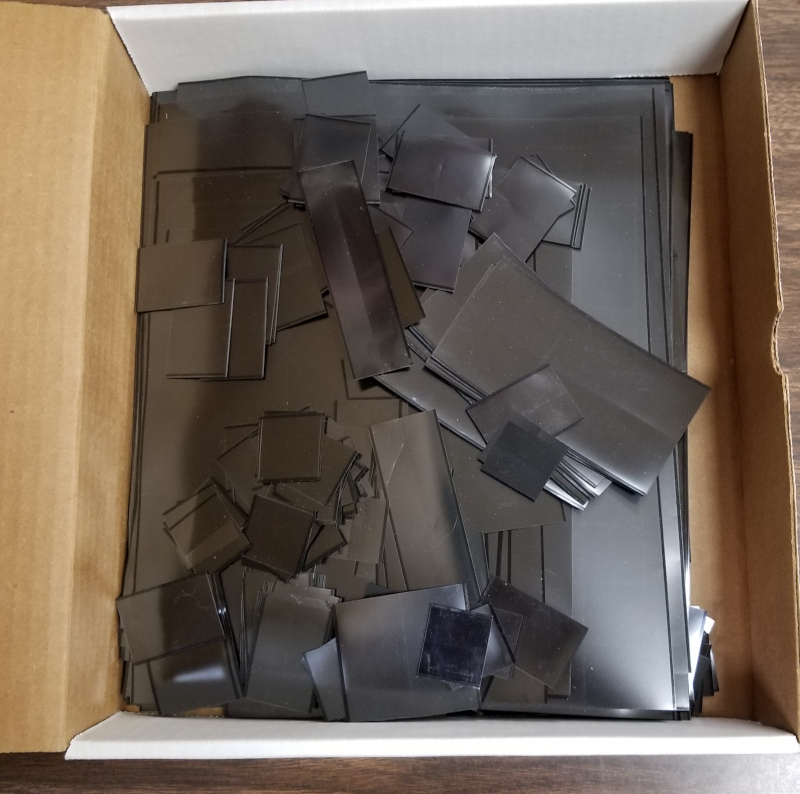 MOUNTS, Dark Background Mounts, Unsorted, All are Unused, Includes Strips & Pre-Cut Sizes, Wide Variety of Diff. Sizes, Includes Diff. Brands (Includes "Scott" & "Showgard"), Clean, VF Cond., Weight of Mounts is 2 lbs. 6 oz., Est. Retail Value is About $100.00 (Image)