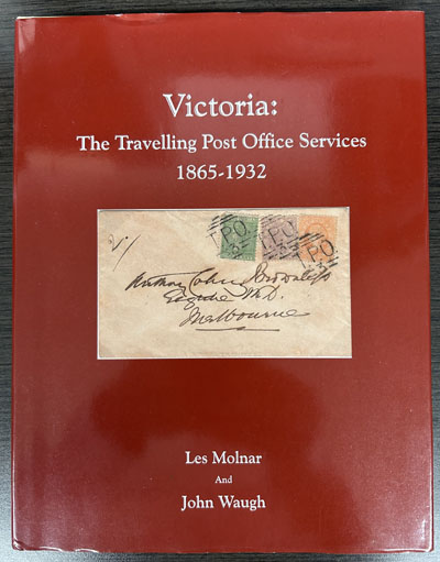 "Victoria: The Travelling Post Office Services 1865-1932" and Four Other Victoria Postmark Publications, starts with the aforementioned book, published in 2015 by Les Molnar and John Waugh, hardbound with dust jacket, 166 pages (plus almost as many appendix pages, illustrated in colour with loads of maps, tables, etc. Very fine. Also includes "Victoria: the Second Type of Obliteration" (1949), "Victoria: The Butterfly Postmarks" (1949), " Victoria: The Butterfly and Barred Oval Cancellations" (1965) and "Victoria: The Travelling Post Offices and Their Markings" (1955) all by J.R.W. Purves and very fine. A useful group for the Victoria postmark collector or dealer. (Image)