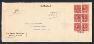 1928 (March 9), four $1 orange Admirals on bulk payment receipt, in two vertical pairs, tied to Form 7P by crisp Kitchener c.d.s., for payment of 800 circulars for delivery from the Gibson Manufacturing Co. in Guelph, a fresh and uncommon higher-denomination franking, extremely attractive and very fine. (Image)