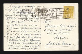 1927 (December 3), 4c Admiral postcard to Riga, Latvia (U.S.S.R.), stamp tied by St. Catharines slogan cancel, a remarkably fresh card to an uncommon destination. (Image)