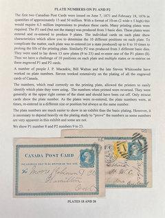 1871 plating study of Webb #P1 & P2 postal stationery cards, the seminal research collection assembled over many years by Earle L. Covert, contributor to the Webb catalogue, comprising 139 visible plate numbers of Webb #P1/P2 cards, neatly mounted on 53 pages in a 3-ring binder with plastic protectors, many with detailed annotations identifying plate number types, with most examples originally acquired in the $20–$50 range or higher, a truly unique and irreplaceable collection representing decades of dedicated study,(Video 1)(Image)