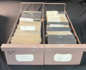 1871 master plating set of Webb #P1 & P2 postal stationery cards, the original reference collection assembled by Earle L. Covert, contributor to the Webb Catalogue, used to produce his plating study, comprising several thousand Webb #P1/P2 cards housed in a two-drawer metal file cabinet, each in a protective plastic sleeve and labeled with date, plate position, and other annotations, a quick review revealed some visible plate numbers, though cancellations and destinations have not been studied, suggesting strong potential for discoveries; an unparalleled reference resource, ideal as a companion to the Plating Study also offered in this sale or as a standalone cornerstone for further research and exhibition. (Image)