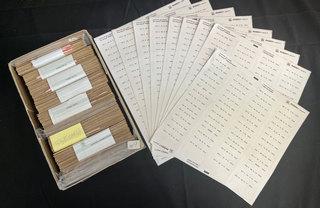 1871 identified plates of Webb #P1 & P2 postal stationery cards, a work-in-progress accumulation forming part of the reference material used by Earle L. Covert, contributor to the Webb catalogue, in preparing his plating study, comprising an owner's count of 558 Webb #P1/P2 cards grouped in numerical sequence and housed in a small cardboard box, with labels and protective sleeves provided but not yet applied, a preliminary review shows some visible plate numbers, and while no effort was made to examine cancellations or destinations, the volume suggests strong potential for finds, an excellent companion to the plated set offered in this sale or a valuable stand-alone lot for further study and development. (Image)