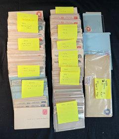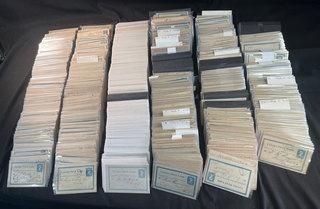 Victorian and Edward VII mint postal stationery accumulation, comprising several hundred mint postal stationery cards and envelopes housed in a small box, with items sorted by Webb catalogue number and arranged front to back, including cards such as P4 (33), P5 (4), P6 (1), PY (12), P8 (2), P9 (6), P11 (1), P13 (11), P14 (1), P15 (12), P16 (6), P17–22, P23–26; letter cards L1, L3–L5, L8, L10; and envelopes EN3–EN5, EN9–10, EN14–EN15, EN24–EN25, including the 2c overprinted issues, as well as twelve Webb #ENX1 #10 size envelopes, duplication is present in manageable quantities throughout, a strong and desirable group ideal for a postal stationery enthusiast or dealer assembling collections by type or era. (Image)