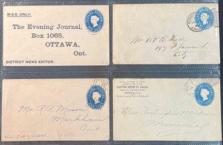 Selection of used Victorian postal stationery cards, including quantities of the First Issue (Webb #P1), First UPU Issue (Webb #P4), Jubilee Issue (Webb #P16), and Maple Leaf Issue (Webb #P21/22), along with postal stationery letter cards (Webb #L1, L5, L8/9), and a Hospital for Sick Children illustrated card (Webb #SKP18aS2) with filing punch hole, some with printed advertising backs, unchecked for cancellations and offering potential finds, a worthwhile group for study or expansion of a specialised collection.. (Video 1)(Image)