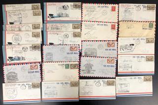 Group of more than 125 early Canada air mail and first flight covers, 1924–1930s, with a strong focus on Western Canada and Northwest Territories flights, featuring a wide array of cachets and frankings, some with Semi-Official Air Mail stamps, numerous pilot-signed items and a mix of commercial usages, a diverse and appealing selection ideal for the collector beginning a new area or the dealer seeking desirable early flight material, overall fine or better. (Image)