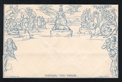 1840 2d Blue Mulready Envelope, unused, from Stereo "a199" with a horizontal crease and traces of having been previously hinged on back, else very fine. S.G. ME4, £450. (Image)