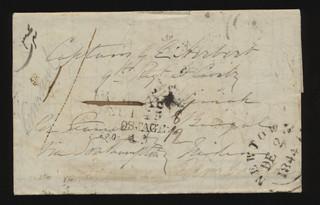 1844 (2 December) folded letter to Captain G.E. Herbert of the 9th Regiment of Light Cavalry in Bengal, cross-written, Newton double split-ring (2 Dec) and black Bombay / JAN 1 1845 / POSTAGE datestamp, Loodiana and additional indistinct boxed backstamps, fine. (Image)