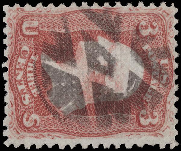 Elaborate Cross (Skinner-Eno Unlisted), gorgeous, virtually complete strike of this exceptional design on a F-VF 3¢ rose (65); perhaps an embellished version of Skinner/Eno GE-E 76. (Image)