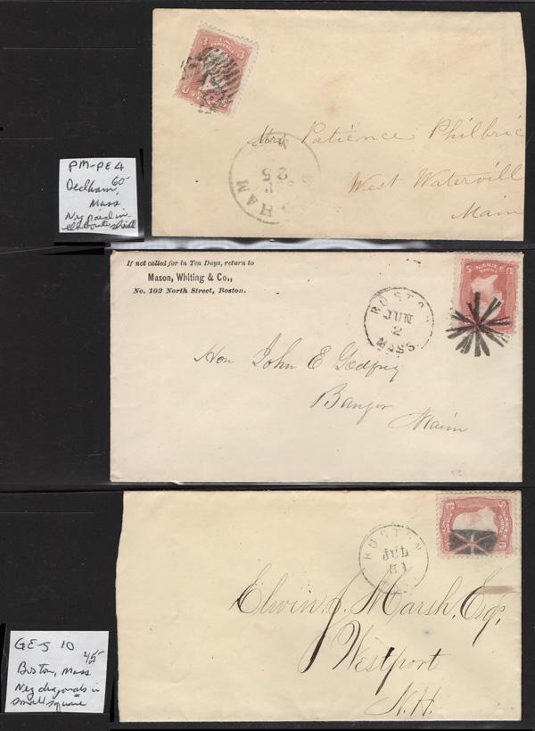 Geometric Cancels of Massachusetts on 3¢ 1861s, 25 covers on 3-row, 2-sided stocksheets; six are Boston; mostly nice strikes and clean covers, generally Fine to Very Fine. (Image)