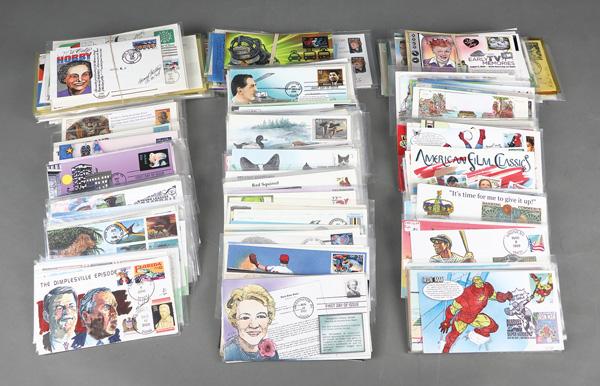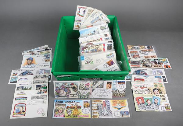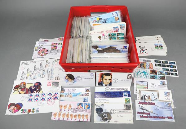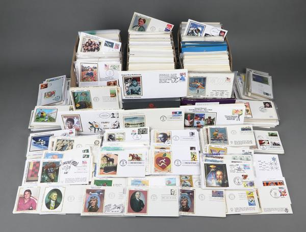 Limited Edition First Day Cover Compilation, 1978-2022, approximately 750 mostly sleeved, limited edition premium First Day Covers; hand-illustrated with some hand-painted or -colored; artists include; Gil Craft, T M Weddle, Ziola Powell, Top Pop, Armstrong Cachets, Fisher, Michael Whelan, Judith Fogt, H Maul, Dynamite Covers, C H Scott, Nancy Ladd, Therome Cachet, Oscar Salazar, Carpe Diem, Jeanne Horak, DRC Cachets, Patricia Akin, Pasley Classic, Jack Fellows, Wile, Ben Kraft, Pugh, Thompson, Wild Horses, Collins, Brennan, Lois Murphy, Ahern, Bee & Shirley, A Cachets, Kribbs, Libert, Ellis, Hams, Doris Gold, Gassman, DFS, Jane Weddle, Andrew Doback, Wilson, Art Korber, Barie, Paeger, PG, Tom Mueller, A O Henry, Weigard, Zaso, Tom's Cachet Designs, Harry Ioor, Crosby, Karen Jabinsky, LMG, Dwojachi, Betty Applegate, Doug Haas, David C, Bill Ressl, Heritage Cachets, DuRussel-Weston, Pohl, R Dyer, CCL Cachets, G Davis, R Halfin, M Rauls, Lois Murphy, Charove, Beller, Edken, Melissa Fox, Erwin Meissner, Lee Mitchell, Gamm, Karen's Cachet, C Murray, Jackson, C W Ray, FCE, Maxie, AEM, Mount Penn, Roessler, Torkel Gundel, B Hatfield, BAM, B Montgomery, Ted Tompkins, Curtis, Warren Wildermuth, Whit's Covers, RJT, Alternative Cachets, PAM, HM, Hunt, Sudduth, Paul Gerwitz, M Friedman, R Shuey, Faith, Horseshoe, Hunt Cachets, Poorman, Michel Journeaux, Van, T Geerlings, Pohl, Ples, Empress, Heartland, Clements, Tutor House, Russ Benning, C Berry, Mille, Pointe, Western Cachets, Info Cachet, Meisels, Finger Lakes, T M Historical, Panda, HDHP, BGC, Hobby Link, House of Farnam, David Smith, Bedford, B r. McIntyre, Paul Hubartt, R E Charlton, Carleen, F Morin, RBP Cachets, KMC Ventures, Michael Guccione, BV Cachets, S&T Cachets, Jet Boy Cachets, Thomas Pelusso, Barry, Karoline's Cachets, Betty Evens, Big Al, Craig McDonald, Maury, Amy Faust, Nathan Marcus, and many more; terrific stock, Very Fine, ex- Richard Ellis. Shipping charges apply - weight 11 lbs. (Image)