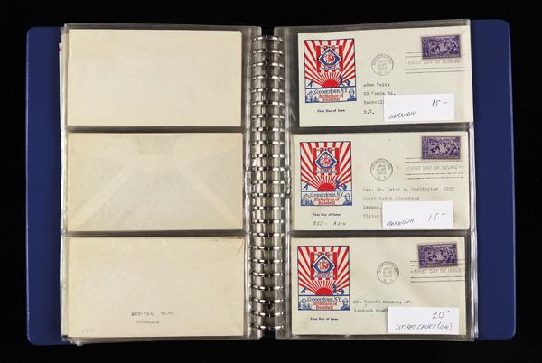 Early Complete Sets First Day Cover Collection, 1932-40, seven massive binders of mostly First Day Cover complete sets; the first two binders are about 100 pages each celebrating the 1932 Washington Issue with write-ups, maps, and other illustrations; the third binder covers the Army-Navy Series including Dietz, Ioor, Rice, Raley, Grimsland, Newman-Sudduth, Grandy, Anderson, Fairways, Kapner, Dean Aubry, Roessler, Coulthard, Roy, Historic Arts, Lane, and many other cachetmakers, numerous complete sets and little duplication; a binder of National Parks with wonderful illustrations from Bates, Ioor, WSE/Dyer, Rice, Parsons, Grimsland, Top Notch, Anderson, Fairway, Roy, Imperial, Gundel, and Beverly Hills; and the remaining three dedicated to the 1940 Famous Americans Series including a binder of matching plate blocks and two binders with hundreds of premium Famous American FDCs (most in complete sets); a stunner, Fine to Very Fine. Shipping charges apply - weight 50 lbs. (Video for this lot) (Video2 for this lot) (Video3 for this lot) (Video4 for this lot) (Video5 for this lot) (Video6 for this lot) (Video7 for this lot) (Image)