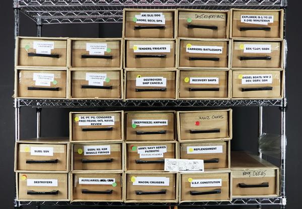 United States Massive Naval Cover Stock, 1930's-1990's, in 25 large dealer cover boxes with slipcases (Pittsburgh File Boxes) with a total count of over 20,000 covers, each cover neatly placed in mylar sleeve, mostly addressed, each cover sorted by ship or type of ship, generally Very Fine. (Image)