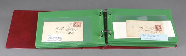 1851-57 3¢ Covers: Mourning Covers & Embossed Lady's Envelope (Scott 11//26), 72 covers in a Safe one-row cover book; 11 are Mourning covers (6 #11/11a, 5 #26), the rest Embossed lady's envelopes (43 #11/11A, 17 #26, one #65); condition is somewhat mixed and there is some oxidation, but there's still plenty of nice F-VF material here, fully imaged online. Shipping charges apply - weight 3 lbs. (Video for this lot) (Image)